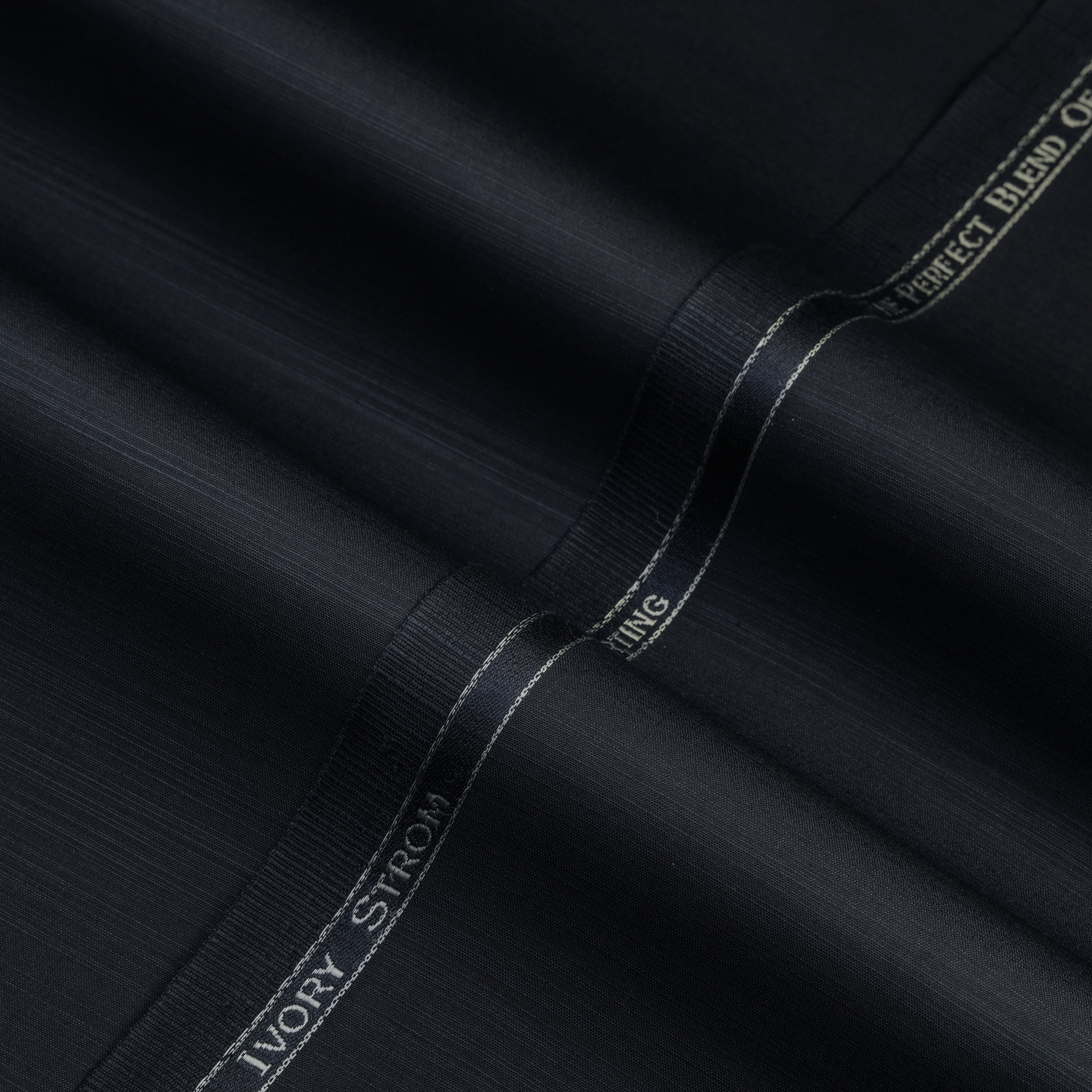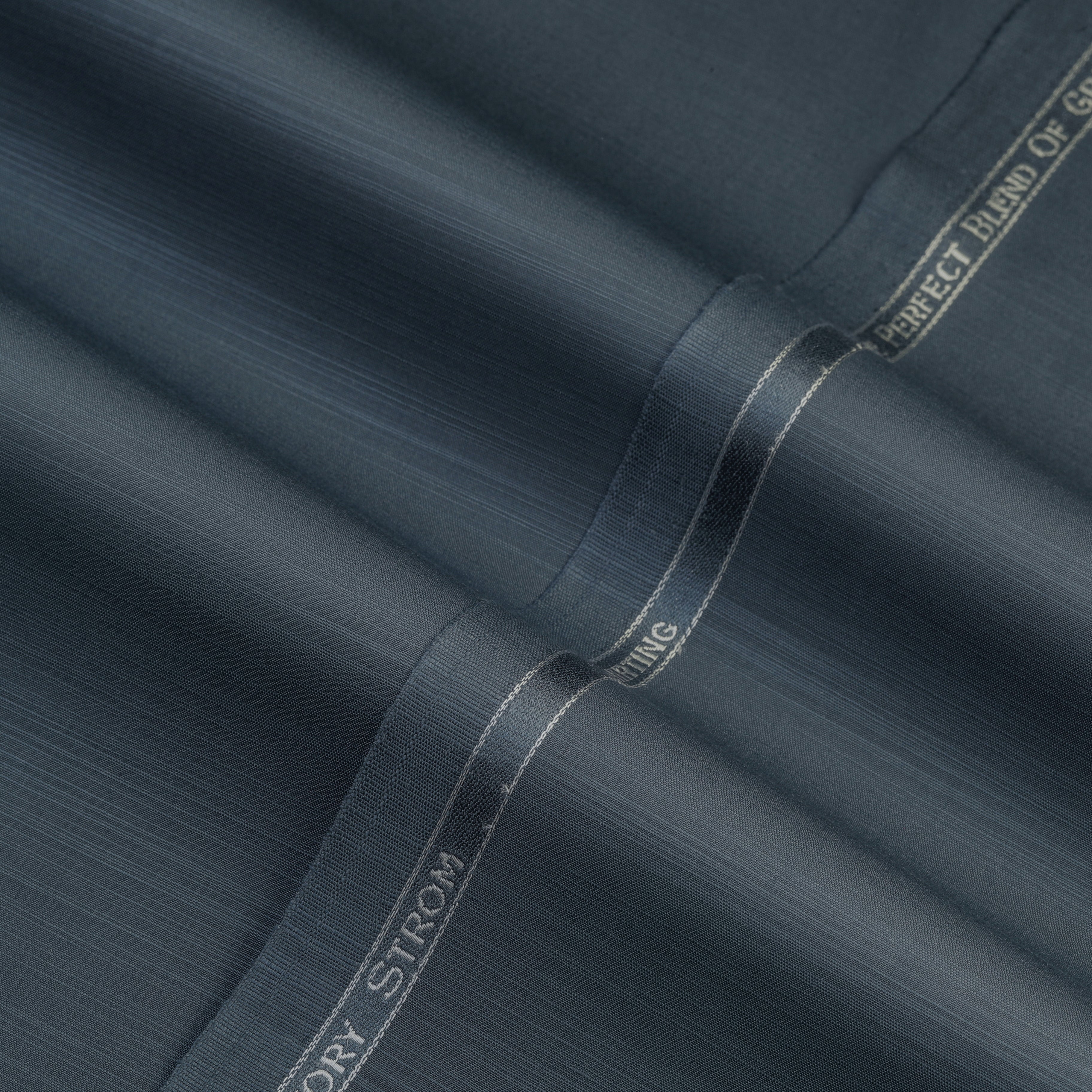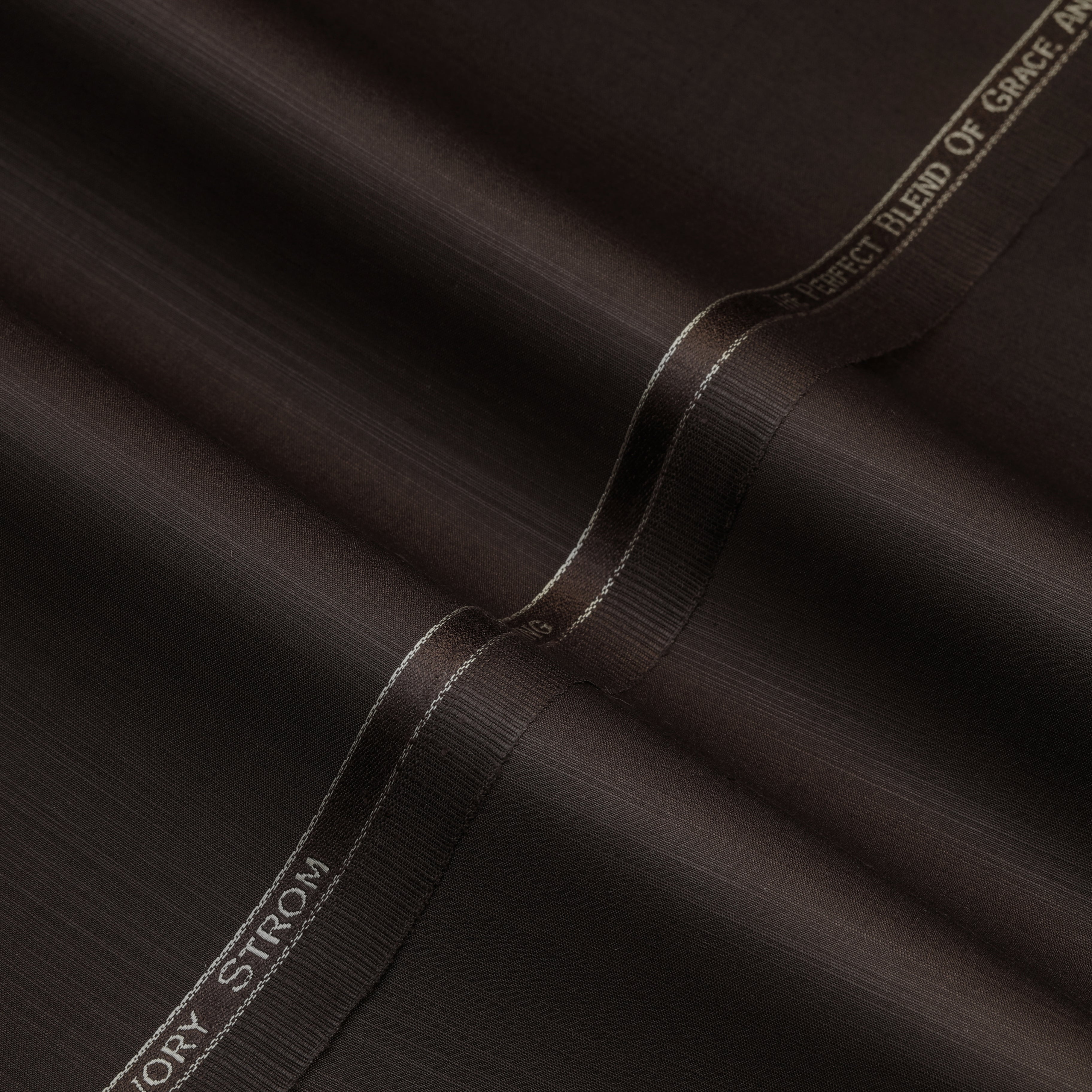 Ivory Strom Blended Fabric showcases a finely aligned weave with a subtle linear texture that adds depth and character to the surface. The blended construction enhances durability while maintaining a smooth and balanced feel. Its texture appears consistent and well-structured, offering a refined finish with a clean presentation. The precisely finished selvedge with branded detailing reflects reliable quality and skilled craftsmanship, giving the fabric a modern and sophisticated appeal.