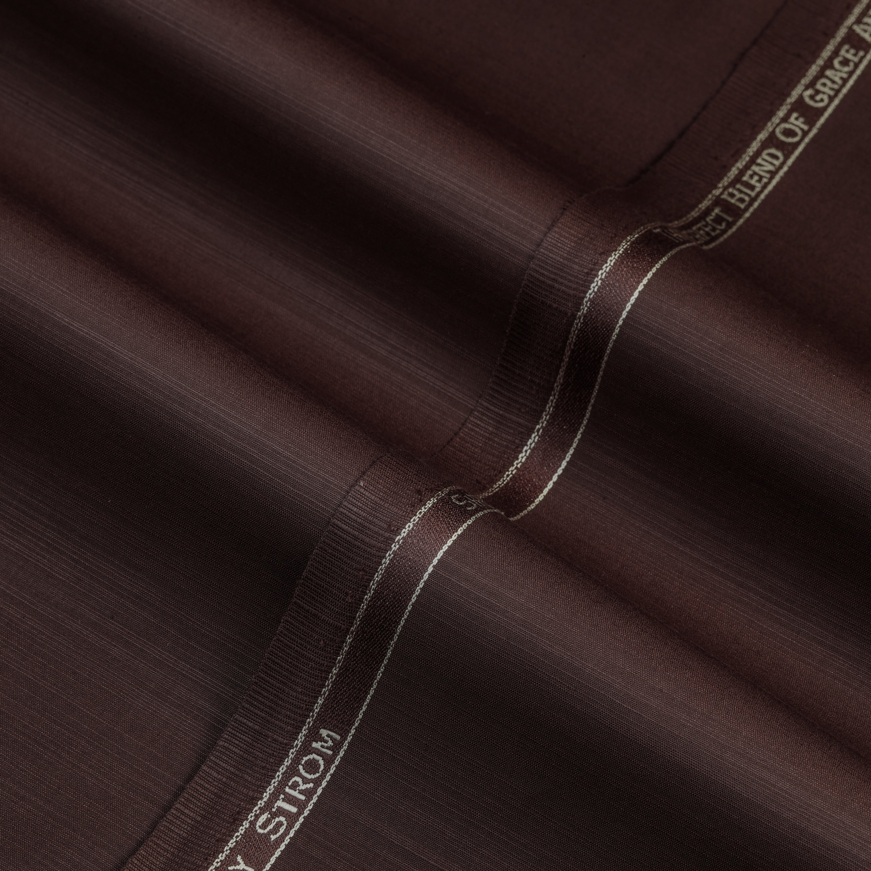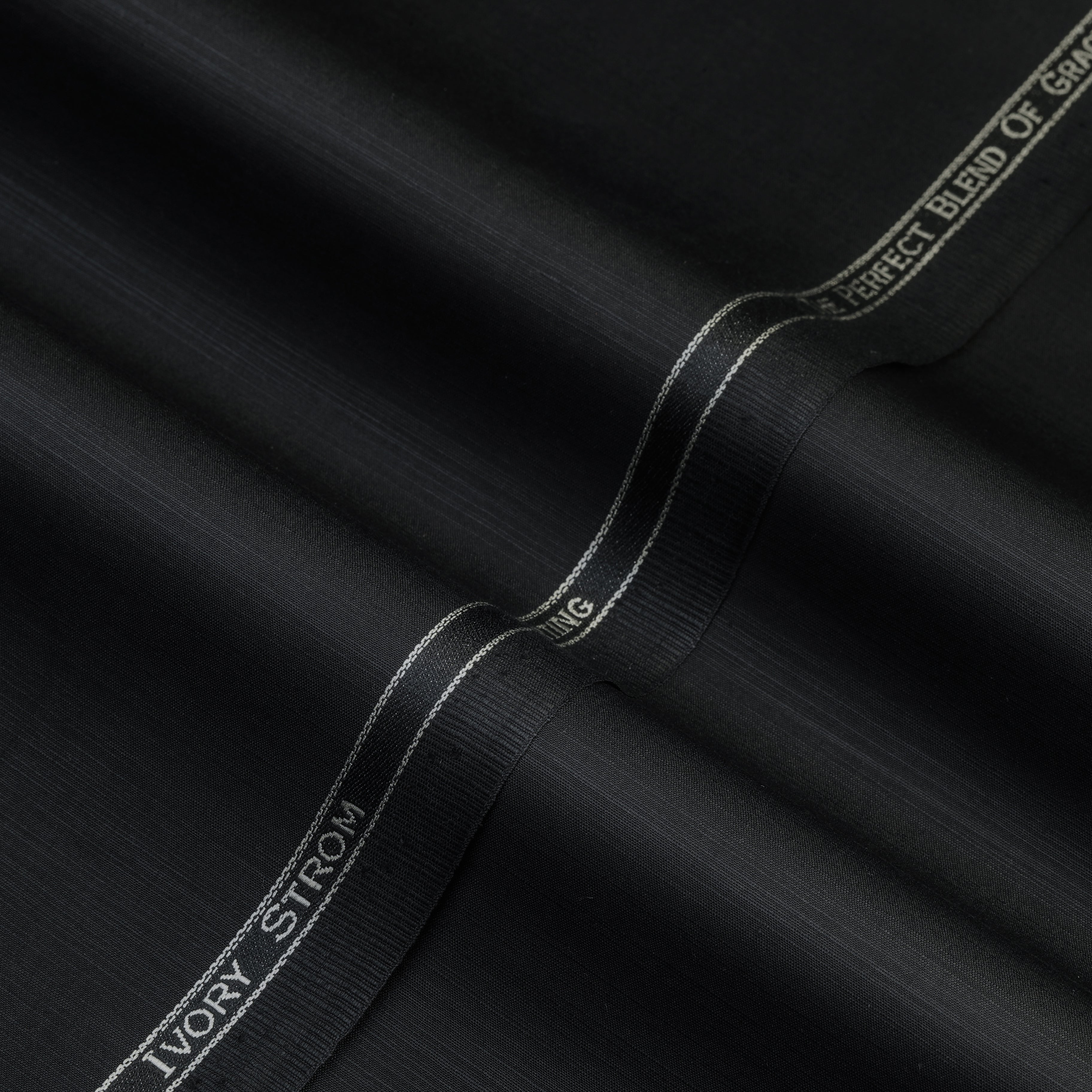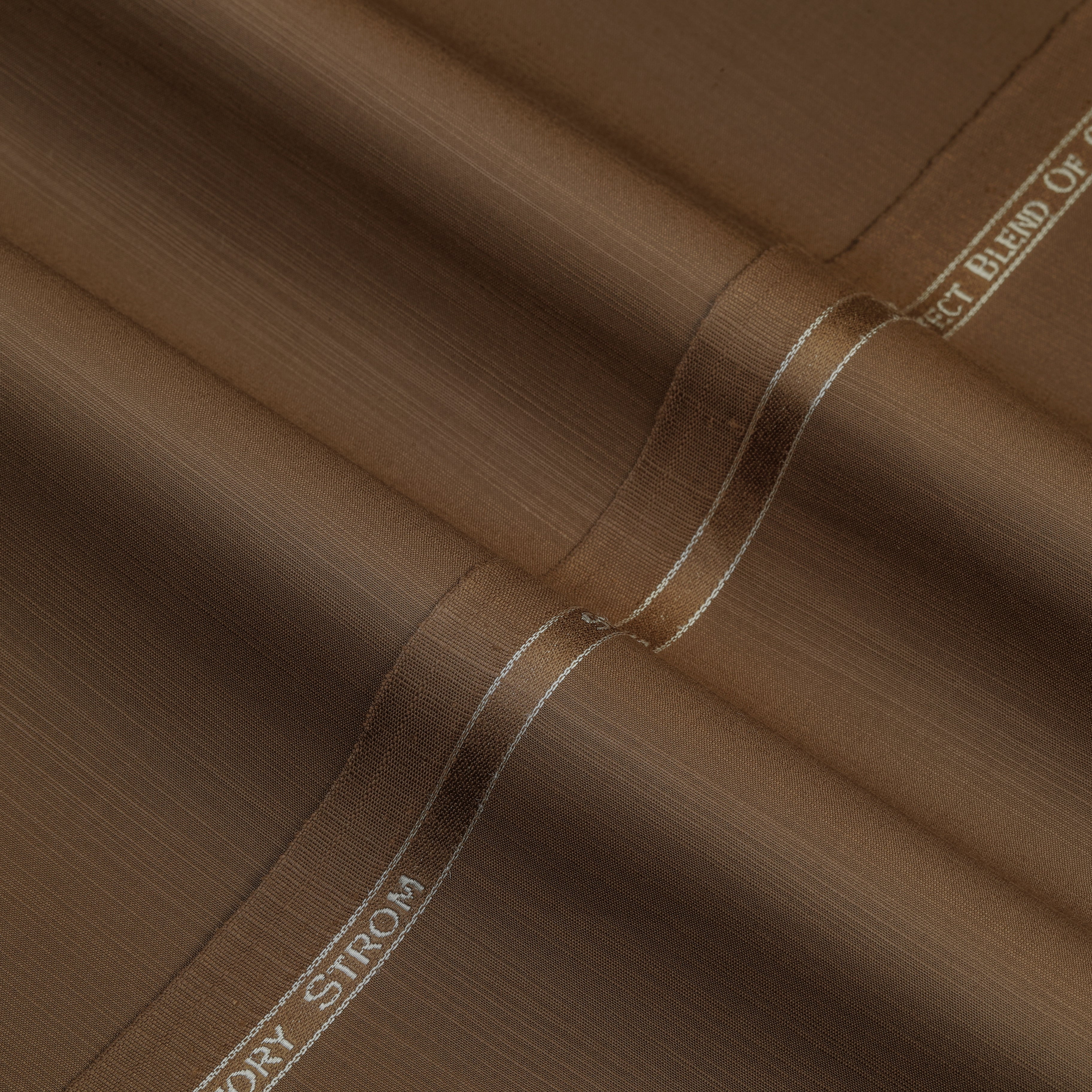 Ivory Strom Blended Fabric showcases a finely aligned weave with a subtle linear texture that adds depth and character to the surface. The blended construction enhances durability while maintaining a smooth and balanced feel. Its texture appears consistent and well-structured, offering a refined finish with a clean presentation. The precisely finished selvedge with branded detailing reflects reliable quality and skilled craftsmanship, giving the fabric a modern and sophisticated appeal.